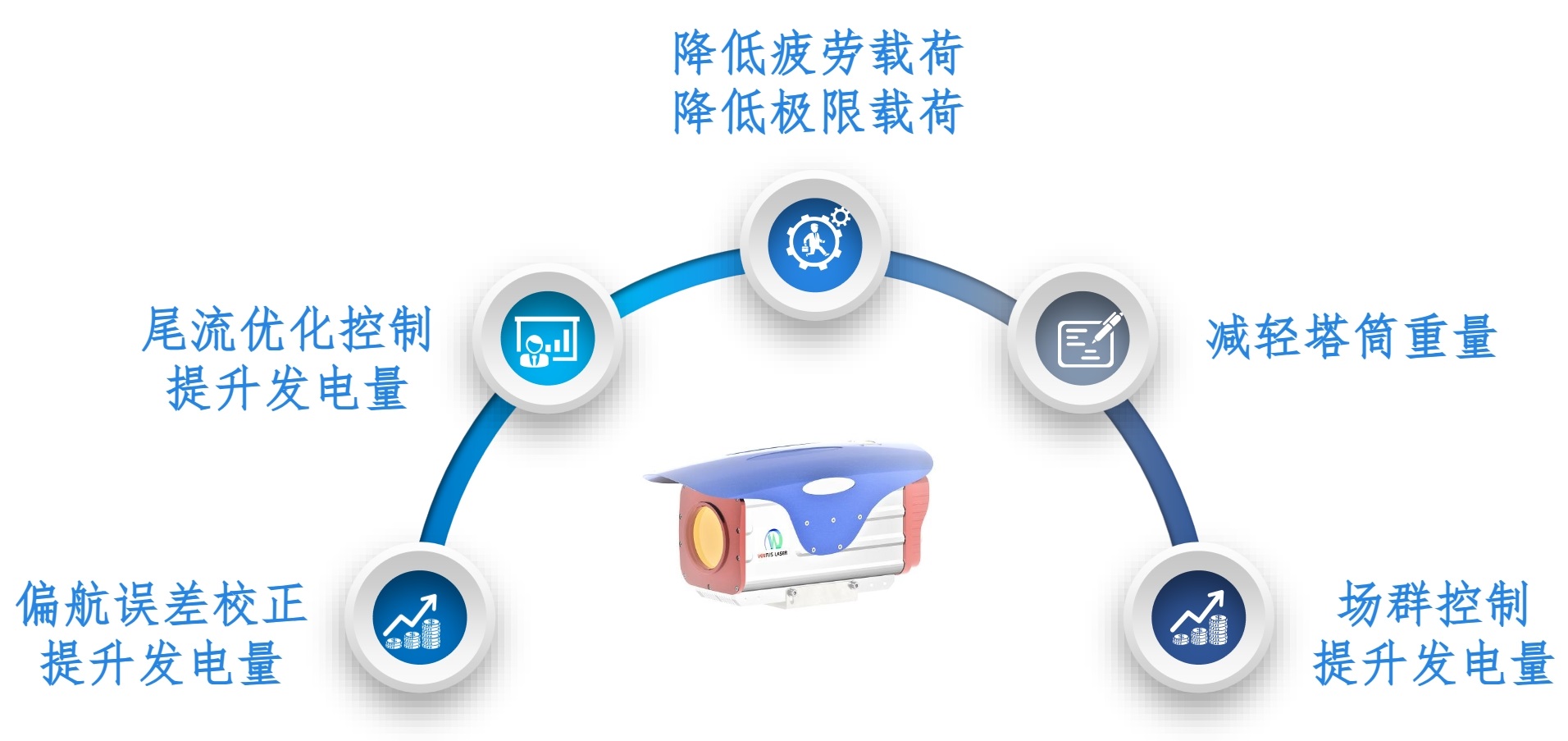 激光测风雷达基本原理,是通过使用 1550nm 准连续波,测量风机前方的风况。雷达测量激光束方向上的移动的粒子,通过分析发射激光的径向多普勒频移,反演计算出正确的风向及风速信息,测量的是 3D 风速上的一个矢量值。